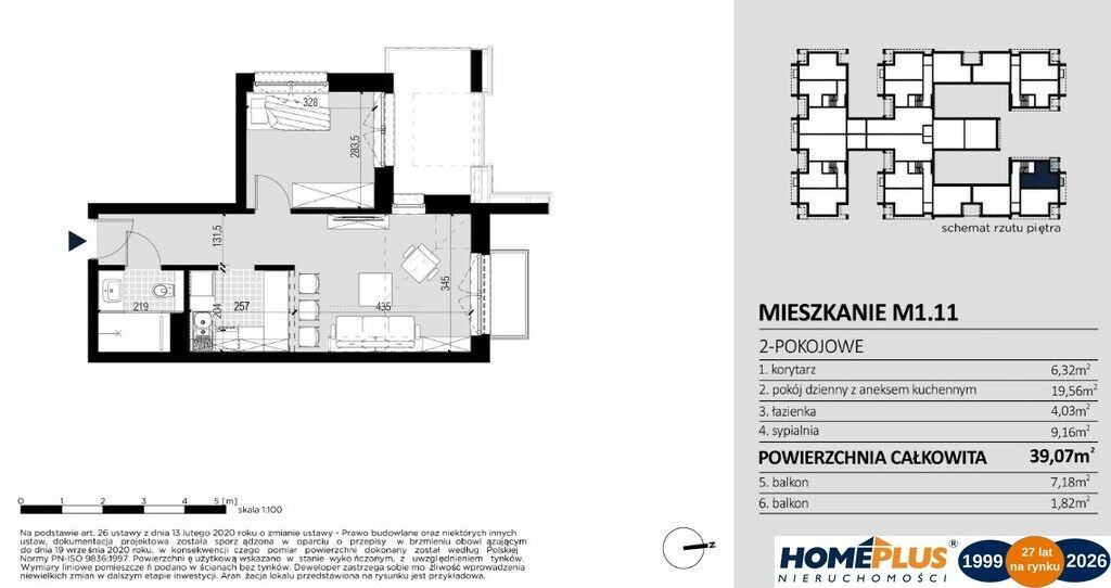 0% prowizji. Planowany termin zakończenia inwestycji: VI.2026Apartament nr M1.11, 2 balkony: 7,18 m + 1,82 m, m-ce parkingowe